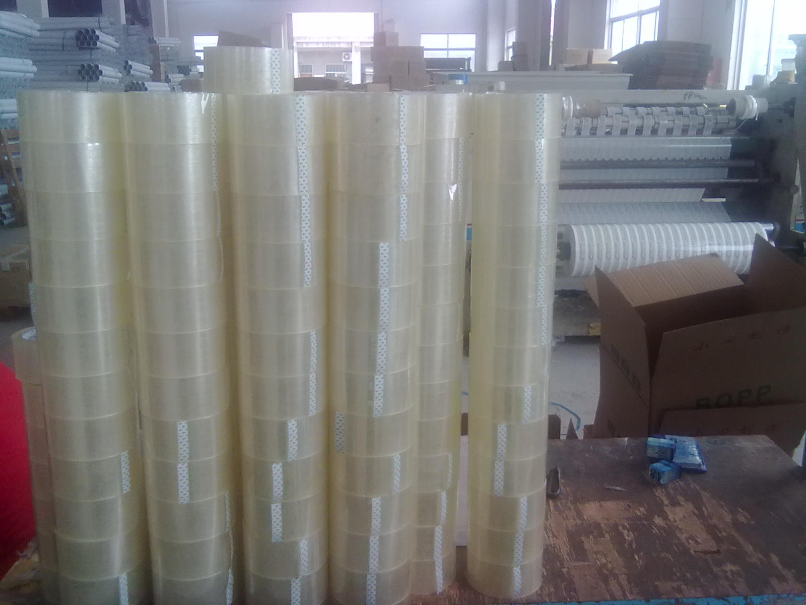 封箱膠粘帶是以聚丙烯薄膜(BOPP)為基材,涂以丙烯酸脂壓敏膠制造而成。具有質(zhì)輕、成本低、抗拉伸等優(yōu)點(diǎn),也適用于自動(dòng)包裝封箱機(jī)。